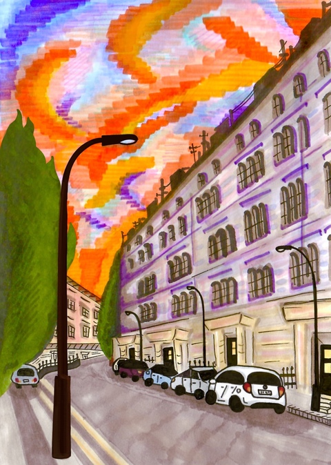 Темой своего скетчбука я выбрала дорогу, так как ежедневно провожу длительное время, добираясь в университет или домой. Я постаралась запечатлеть различные способы в разное время дня на протяжении двух месяцев.