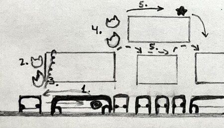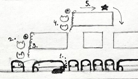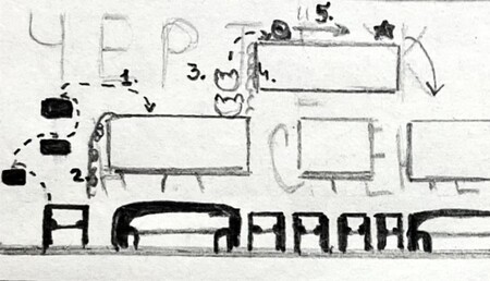 Способы прохождения персонажами Кепочка и Робокот (слева); Силач и Кепочка (справа).