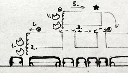 Способы прохождения персонажами Суперпрыжок и Ростик (слева); Суперпрыжок и Телепат (справа).