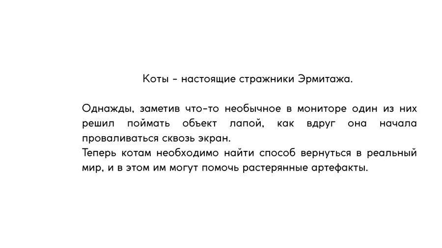 «/Эрмитажные коты» — это кооперативная головоломка, где сочетания разных игровых персонажей подарят уникальные способы решения задач.