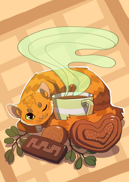 — клеточка на заднем плане традиционна для домашних пледов, поэтому такой принт на бэкграунде вносит чуть больше уюта в общую атмосферу иллюстрации;