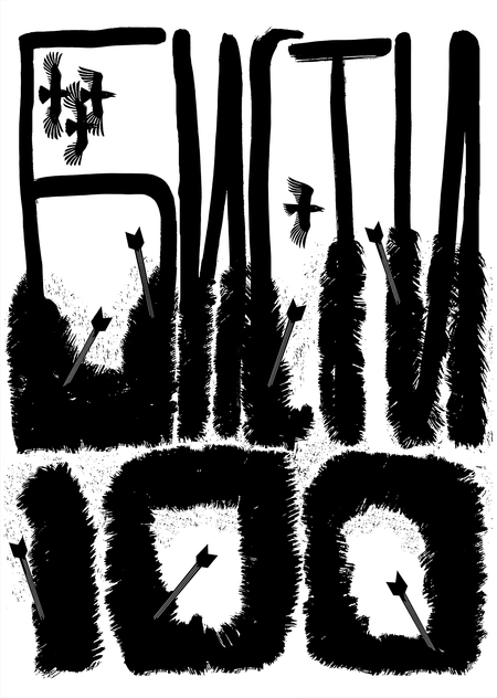 This poster has captured popular images of itself in the Bisty works: birds and gunshot. Only in the present case are the arrows already stuck, and the birds now seem to be flying on the battle, fighting.