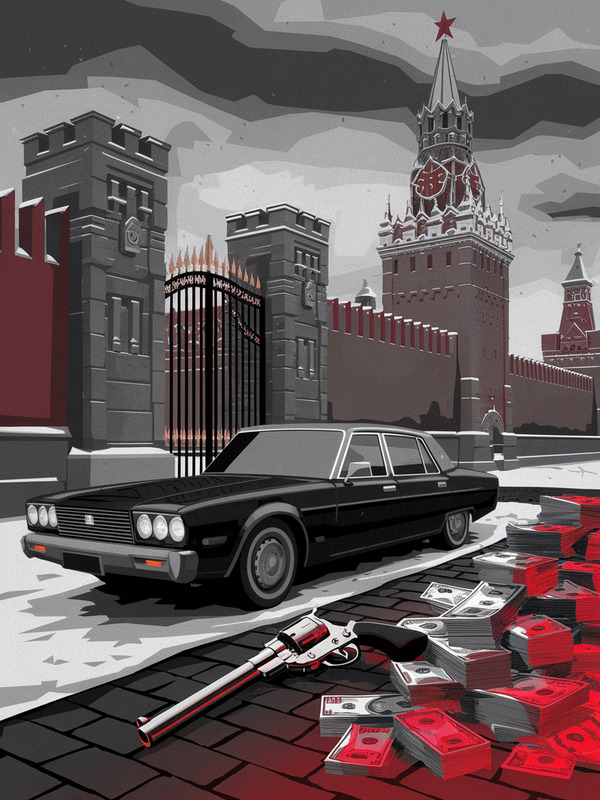 - Обложка: Create an stylized image on the theme «Crime in Russia» The image should reflect the theme of crime, but without a direct demonstration of violence or tragedies. The color palette is red, black, and gray. The image shows various objects landscapes houses of Russia - Декоративные элементы: Create a stylized image of handcuffs the color palette is muted, black gray red