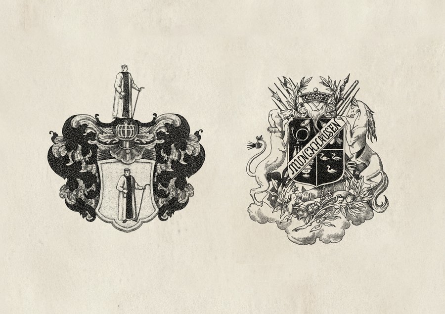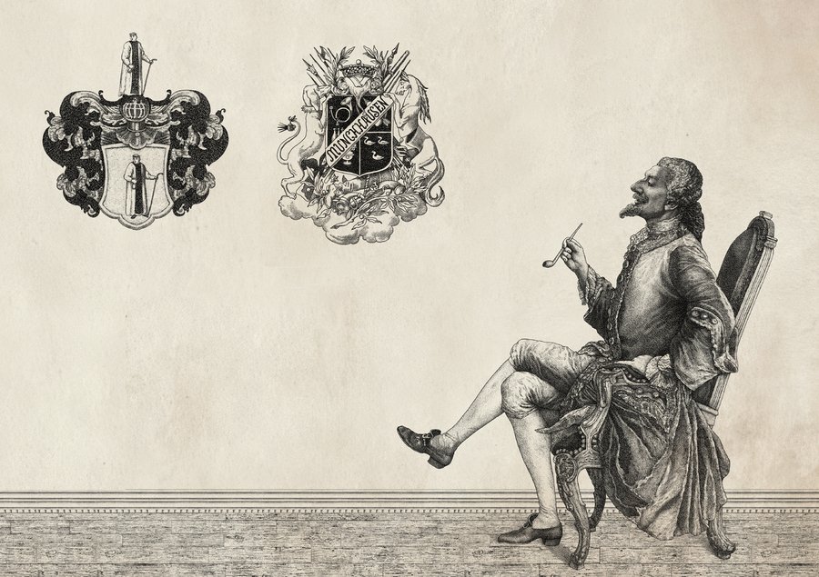 Иллюстрации для оформления выставки в Манеже Малого Эрмитажа «Приключения барона Мюнхгаузена в России»