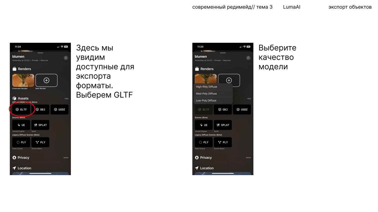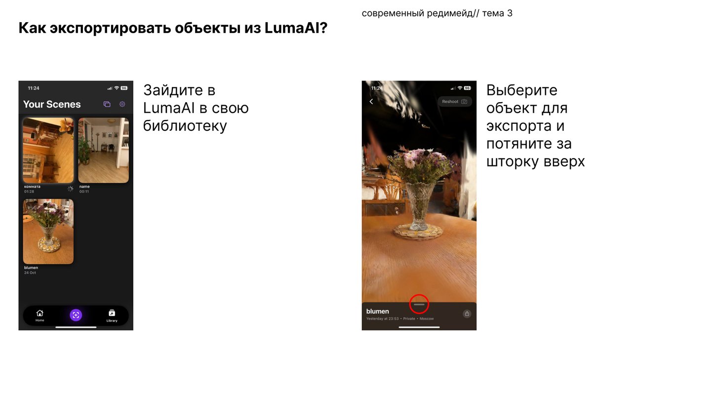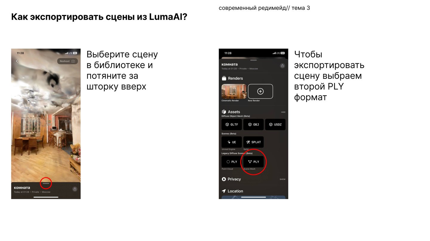 Студентам также дается «шпаргалка» по экспорту из Polycam и LumaAI: