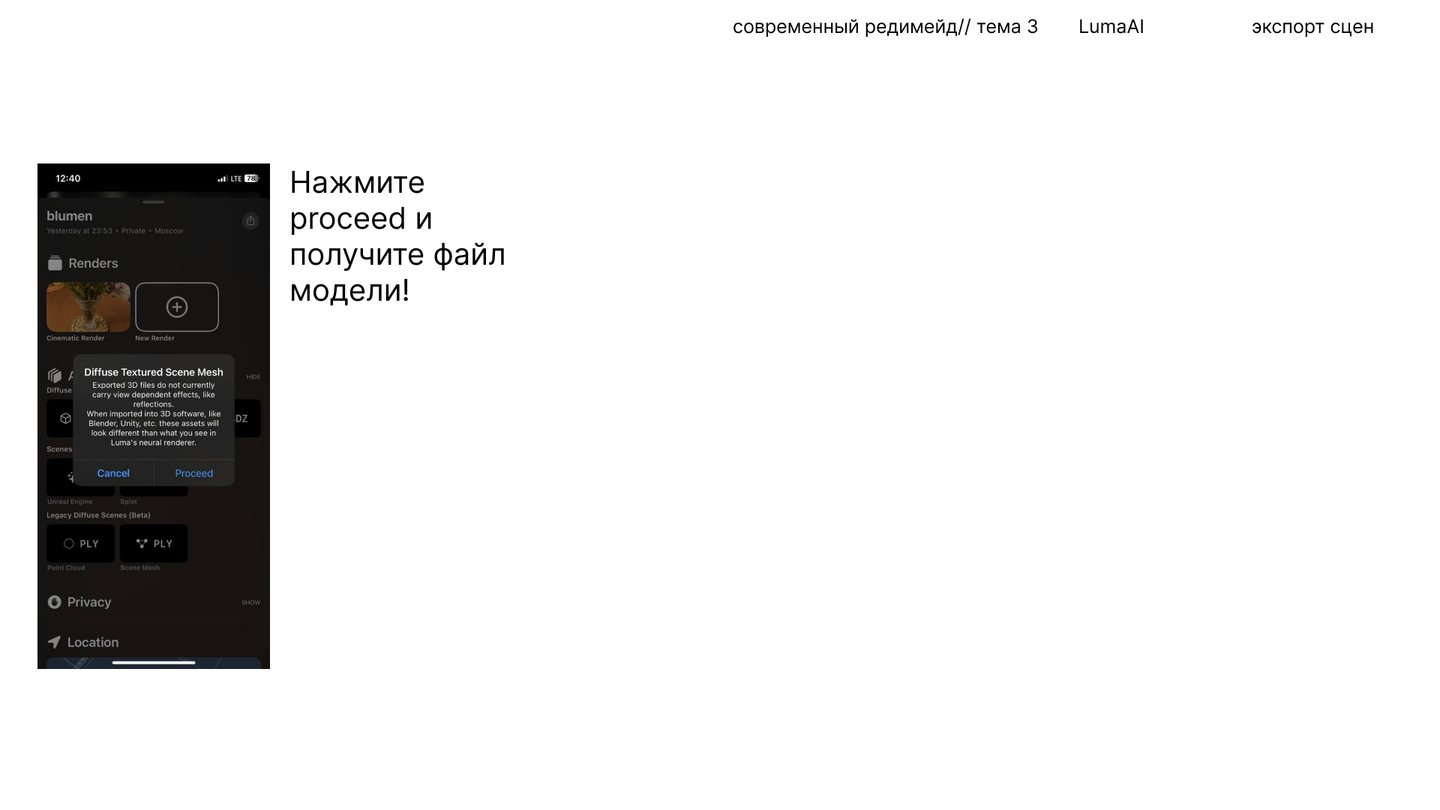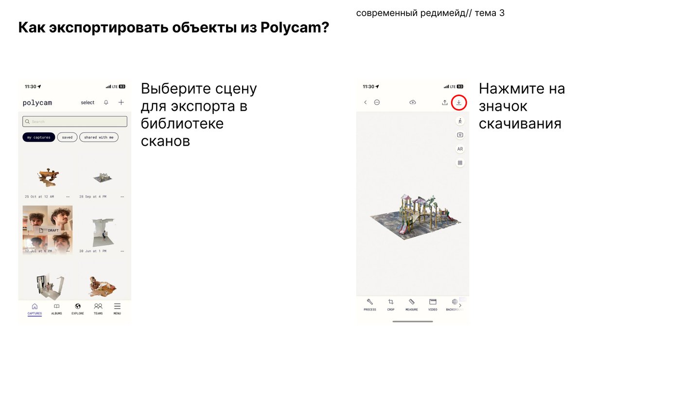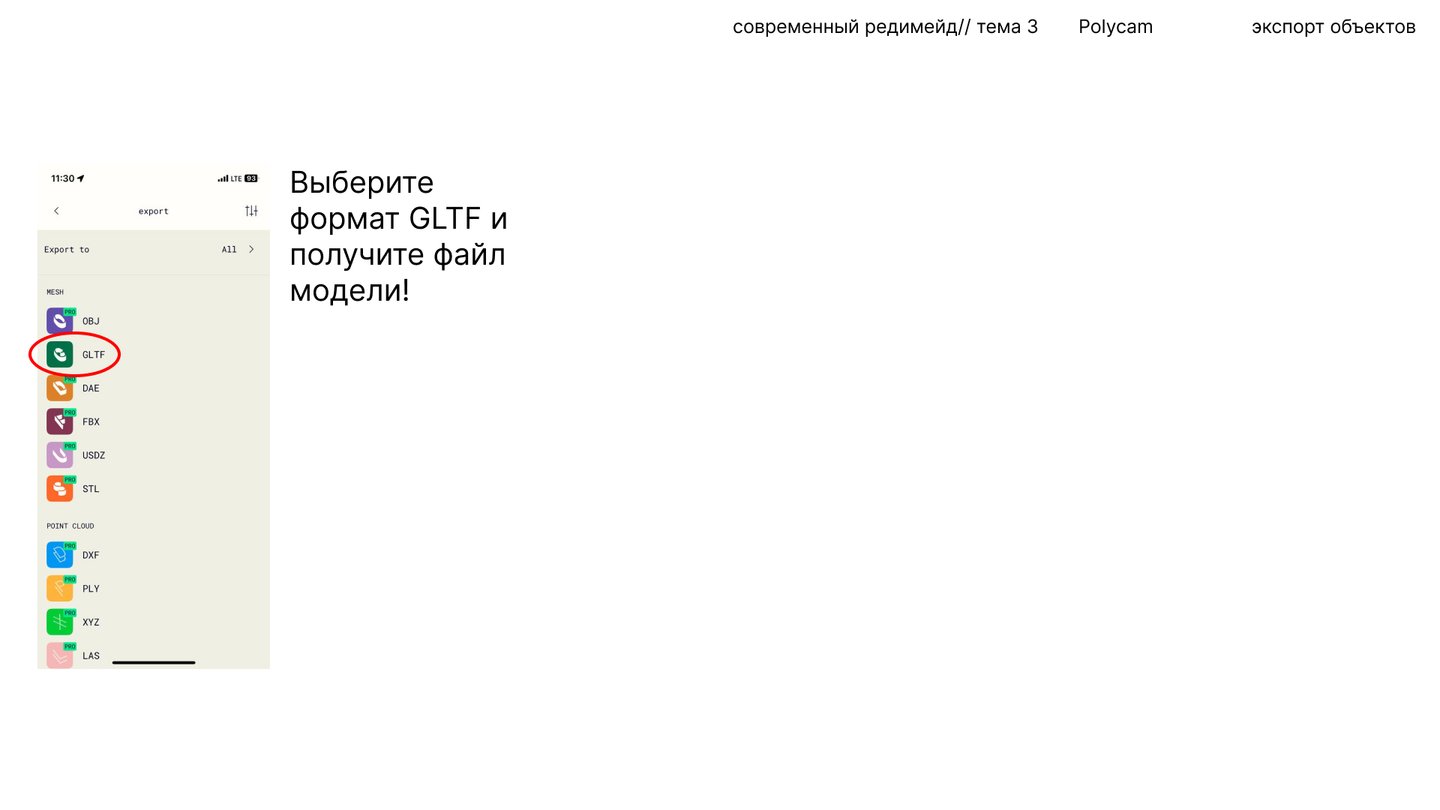 Студентам также дается «шпаргалка» по экспорту из Polycam и LumaAI:
