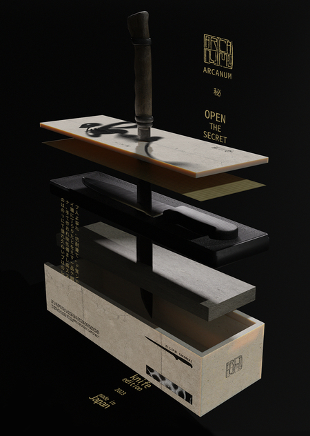 Arcanum — бренд, воплощающий суть японского мастерства в искусстве изготовления ножей. Логотип напоминает древнюю японскую печать, а в основу концепта упаковки заложена легенда о «Неистовой пятерке».