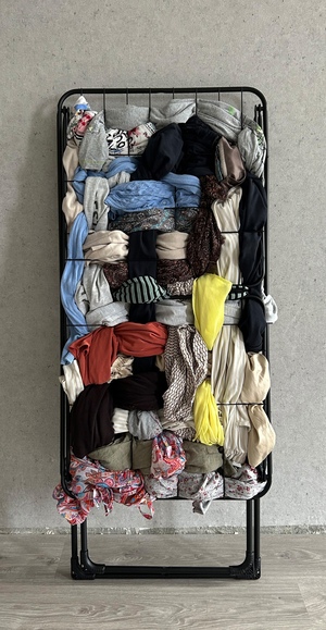 Я нарушаю бытовой порядок, не правильно развешивая белье, но металлическая решётка сушилки создает новую систему переплетений.