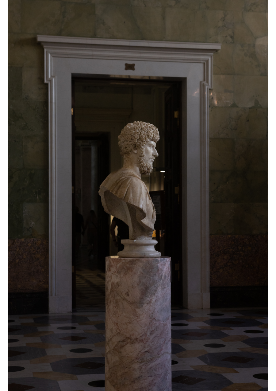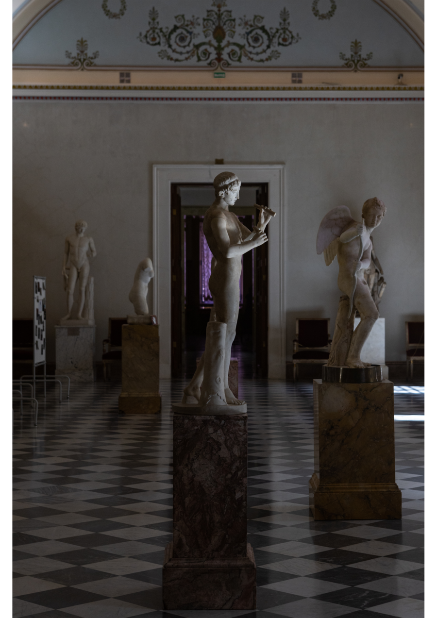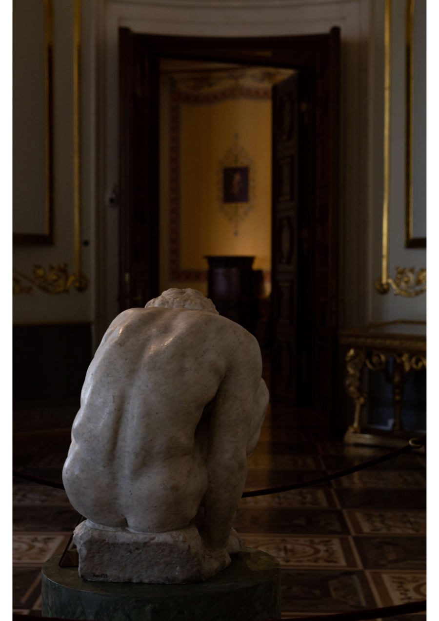 В этой серии фотографии показано каким образом пространство музея влияет на восприятие искусства. Длинные пролеты коридоров, цвет дверей, распределение света и тени.