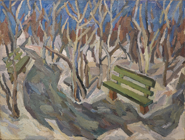 Это было время бесконечного становления, узнавания какого-то другого мира, и это всегда было связано с общением. Был такой Саша Белослудцев, в то время он работал экскурсоводом в Абрамцево. Я ездила туда писать; мы с ним ездили, помню, зимой — гуляли и беседовали об искусстве… В 83-м году я вступала в Союз, в секцию живописи. И можно было получить договор на картину. Я нарисовала маленький эскизик, и мне дали договор на большую картину к большой выставке, которая должна была проходить в Манеже. В результате я получила направление в Тарусу, в Дом Творчества, где я со многими познакомилась, в том числе со своим будущим мужем.