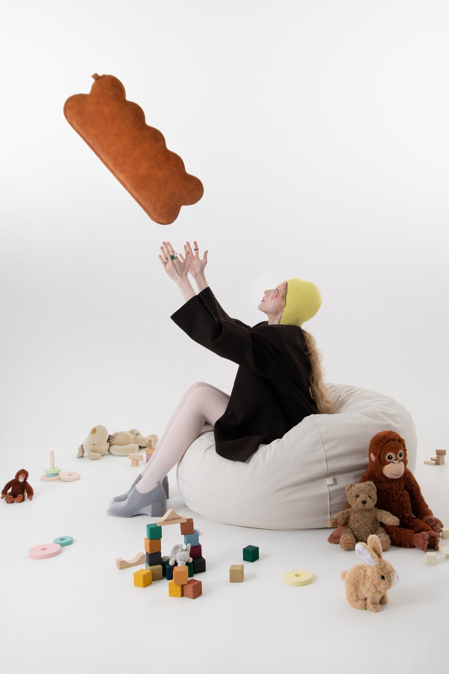 В первую коллекцию бренда входят: Пуф с подушкой «Полдник» Столик «Ириска» Татами «Хрум»