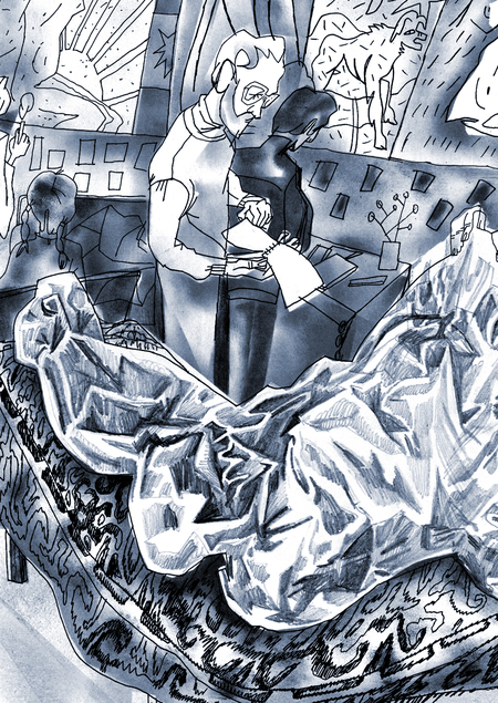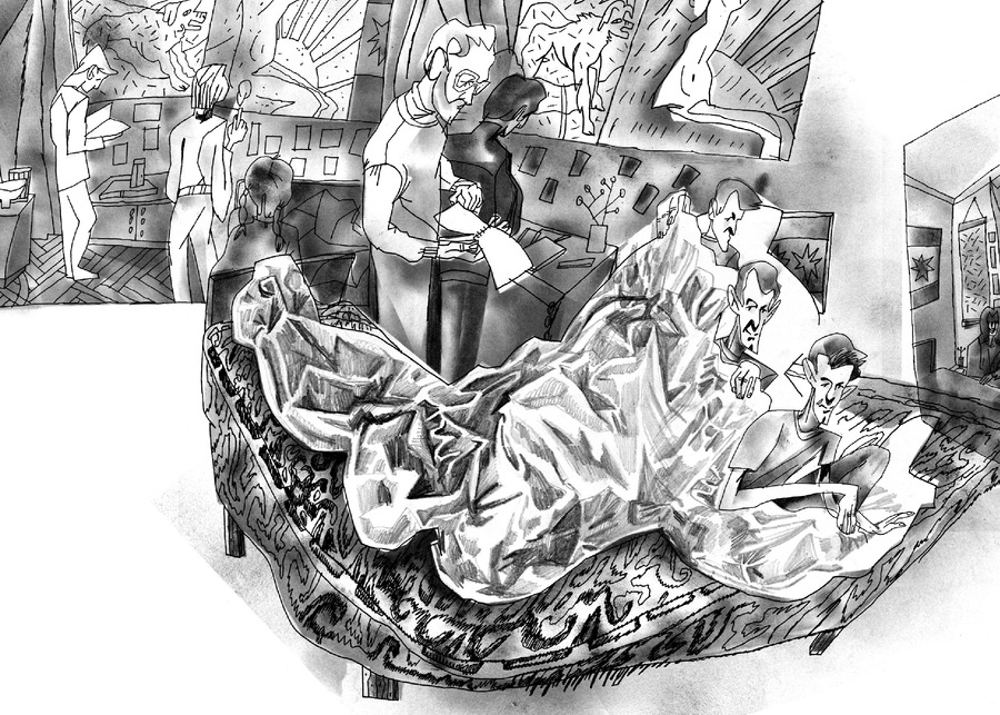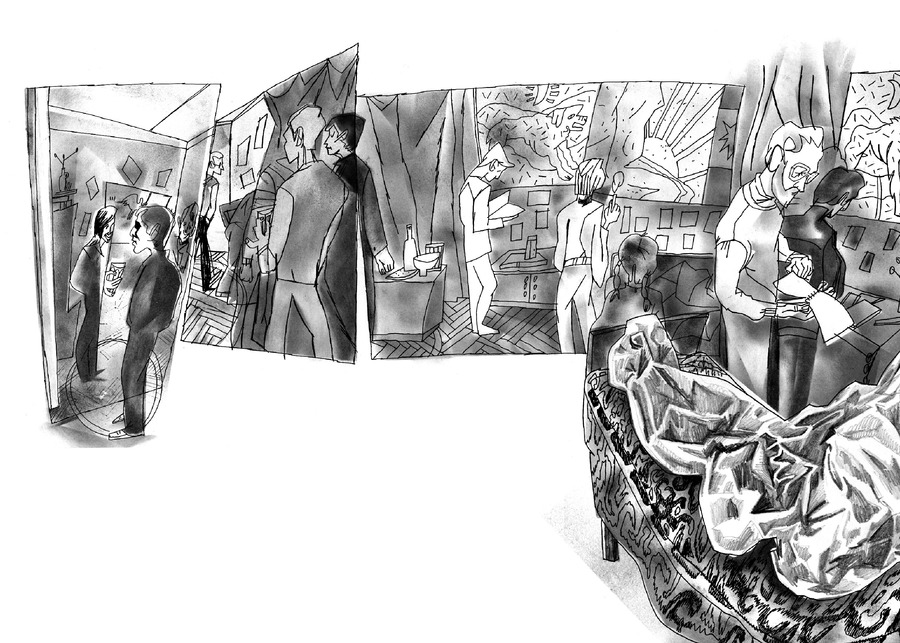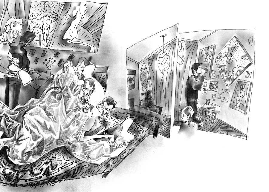 A series of large-format illustrations based on the observation of the variability of the emotional perception of the same room in the APTART gallery, the apartment of the Aleceev Nicky