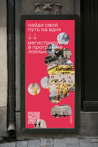 Основной элемент фирменного стиля — это точки, расставленные на карте ВДНХ, чтобы указать на разные места, посещая которые, можно получить скидки по новой программе лояльности.