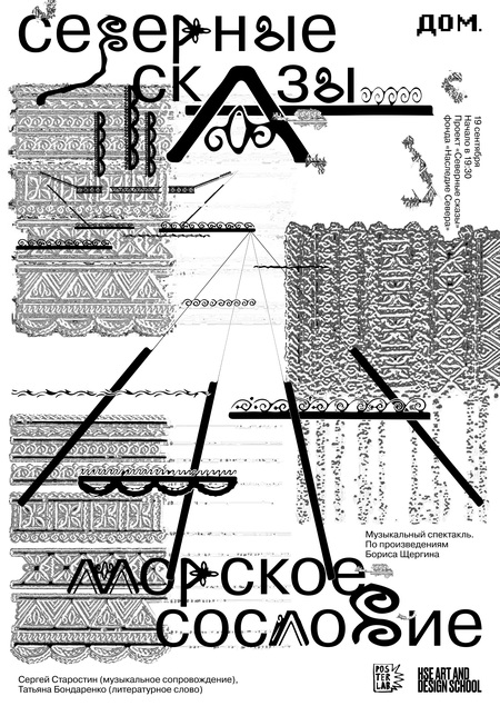 In this poster, I reflected my vision of distant sea horizons. In the process of creating the composition, images have emerged that form associations with traditional crafts in the Russian North, which people have been doing so far «seeing ships»…