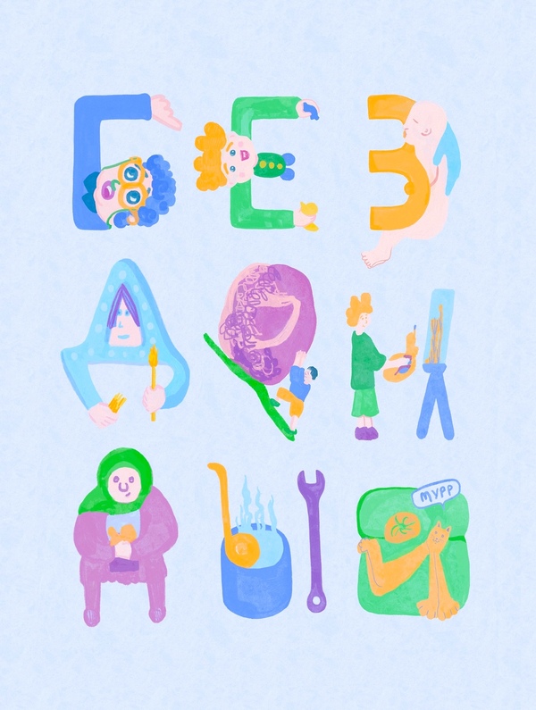 Проект «Бездонный» — это буквица, метафорически отражающая субличности человека, среди которых философ-моралист, ребёнок, родитель, прихожанин храма, трудоголик, творец, добрая тётушка, хозяин/хозяюшка, кошечка/кот.