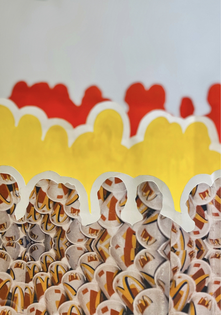 Моя мама долгое время работала в сети «Макдоналдс» и иногда приводила меня к себе на работу. Поскольку мировоззрение ребёнка сильно искажено, то бургеры ему кажутся размером с голову и необычайно вкусными, а яркие краски игрушек и интерьера ресторана так и манят вернуться туда снова. В своём проекте я решила воссоздать атмосферу 2000-х глазами маленького ребёнка.