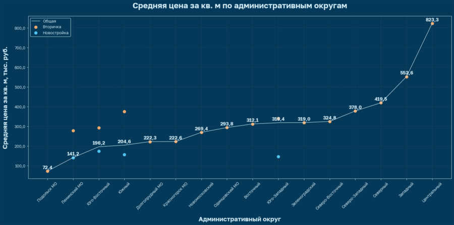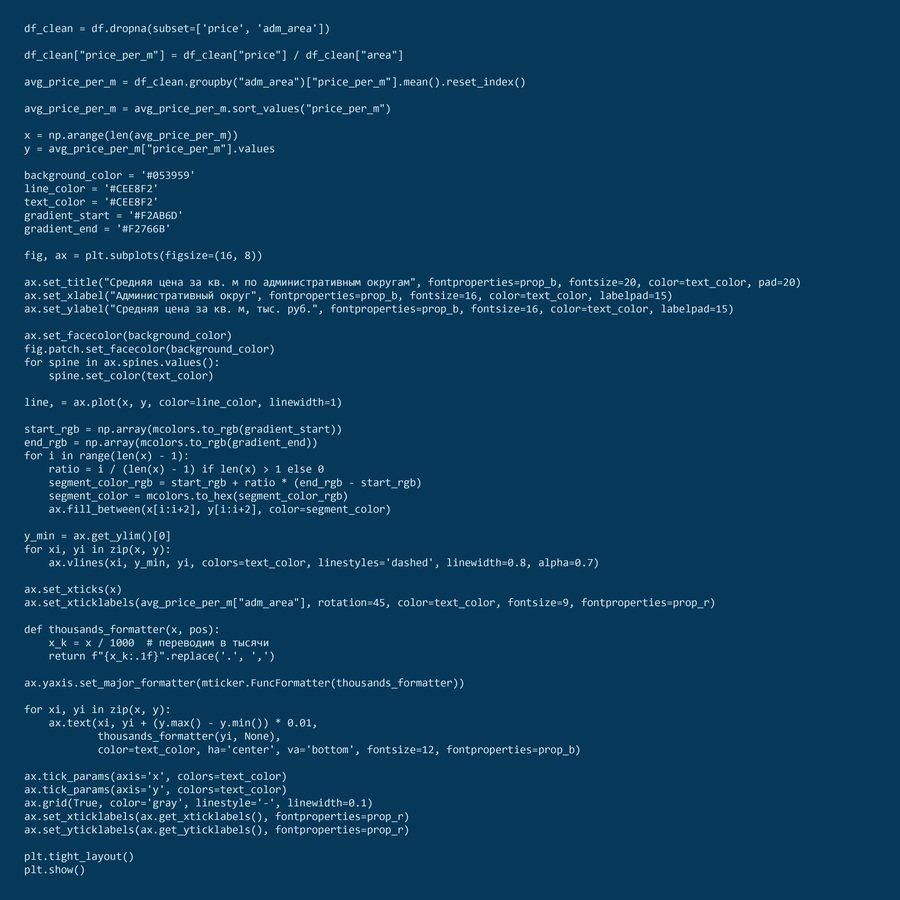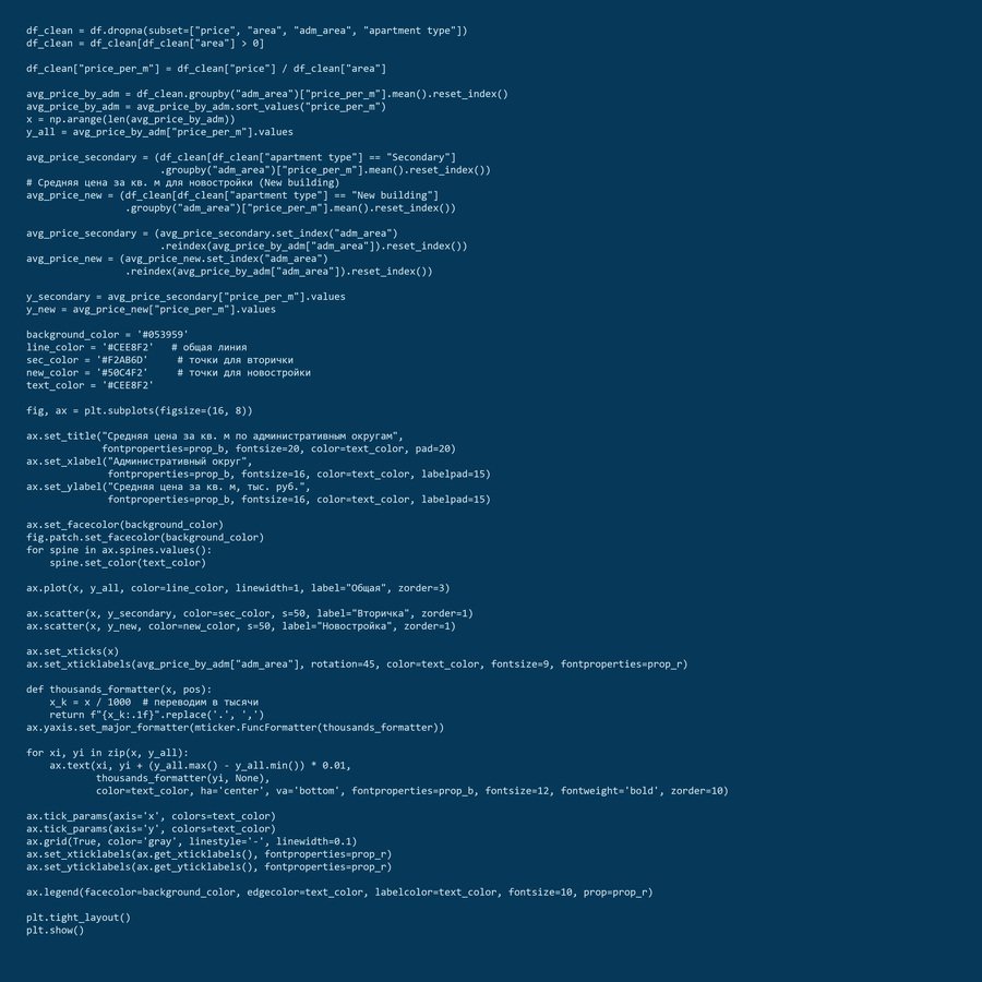 коды для графиков № 3 и № 4. средняя цена за квадратный метр по административным округам