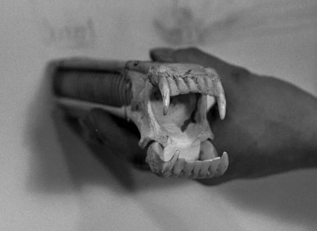 Голова инопланетянина имела механическую конструкцию. Отдельные тросы, управляемые вручную, открывали челюсти, загибали губы и выдвигали клыкастый язык. Исполнительные механизмы были заключены в лёгкий череп из стекловолокна, покрытый полиуретановой оболочкой. Для съемок крупным планом была создана версия, состоявшая из 900 подвижных элементов, бóльшая часть которых использовалась в механизме рта.