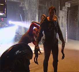 Как и в предыдущем фильме, инопланетяне сняты в темном окружении, скрывающем недостатки. Это позволяет подсвечивать для зрителя яркие детали, оставляя другие в стороне. Сложность комбинации CGI и практических эффектов была в том. чтобы соединить их незаметно, сохранив единое, реалистичное ощущение существа.