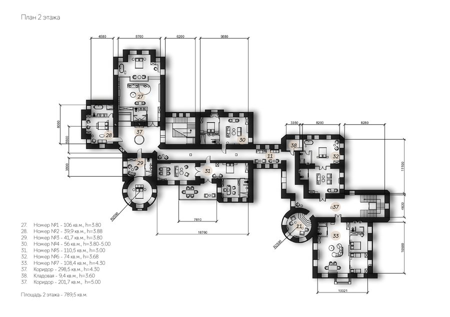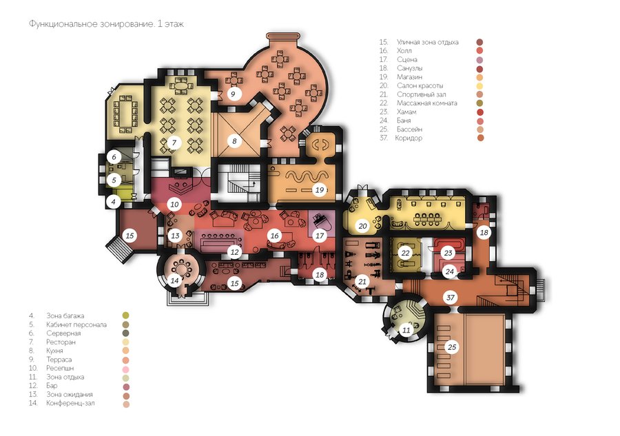 Тема выпускной квалификационной работы — Реновация усадьбы-замка Владимира Семеновича Храповицкого под отель. Концепцией является объединение исторического облика здания с современным интерьером и размышлениями о том, как может выглядеть современный замок.