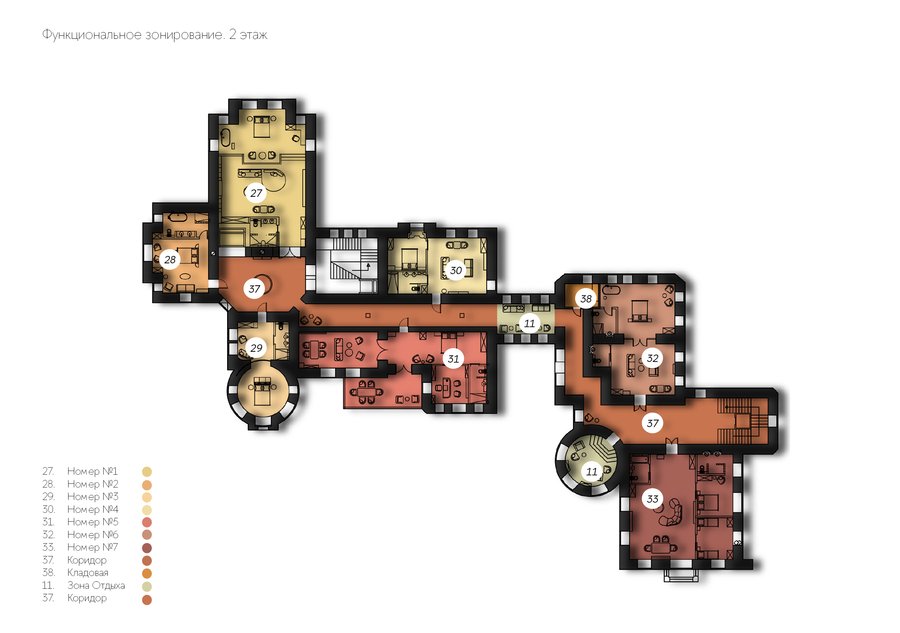 Каждый номер в отеле уникален. Они имеют персональный дизайн с отличительной «визитной карточкой», собственную цветовую палитру и настроение.