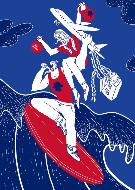 Серия иллюстраций для бренда Pabst Blue Ribbon, отражающих спортивный двух свободы и приятное безумство.
