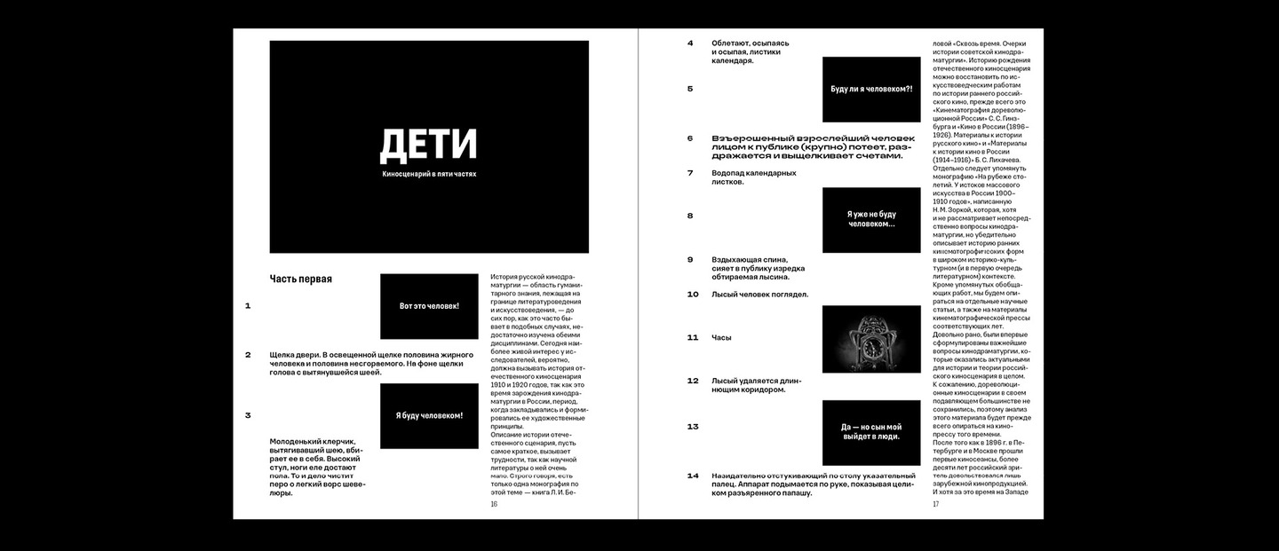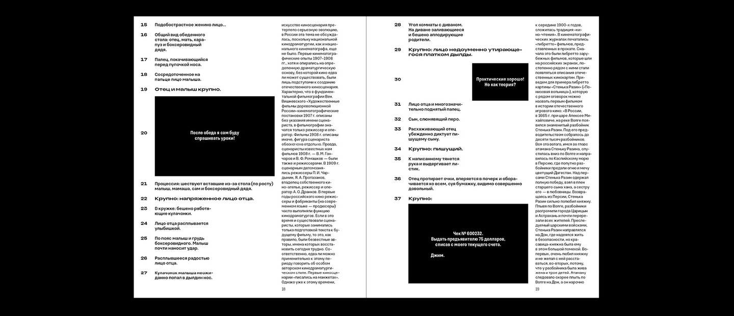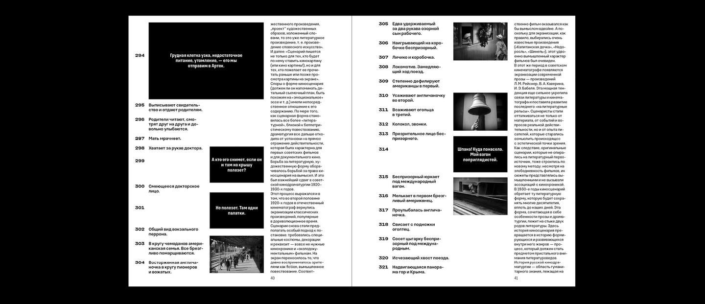 Номера кадров располагаются вне поля набора для сохранения «техничности» сценария