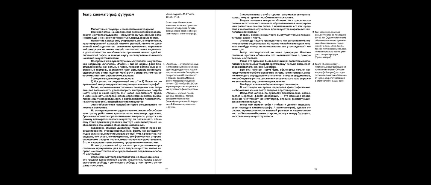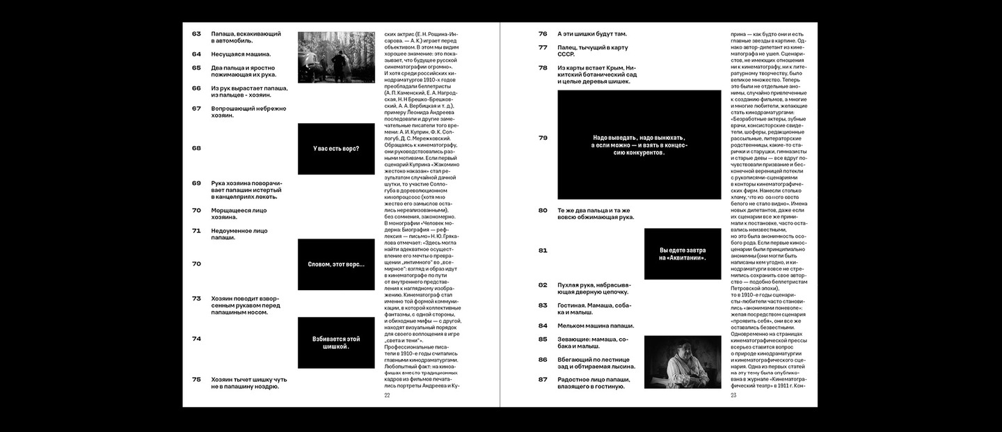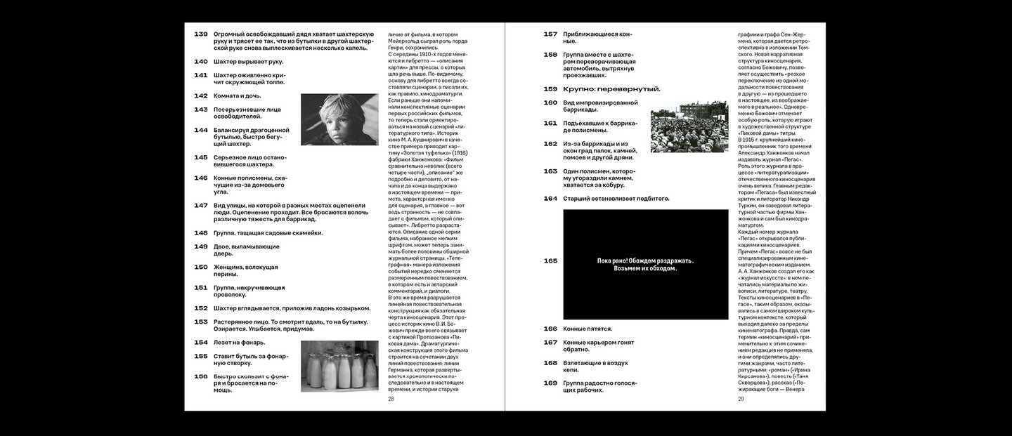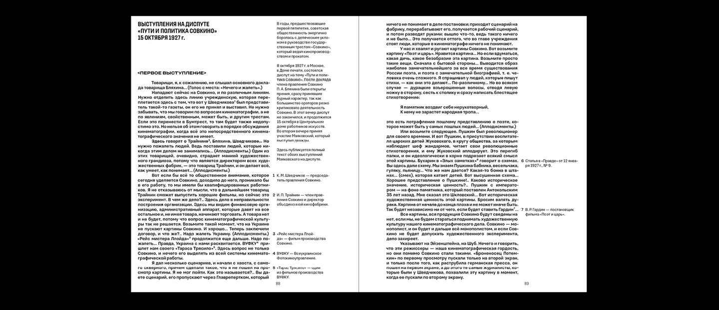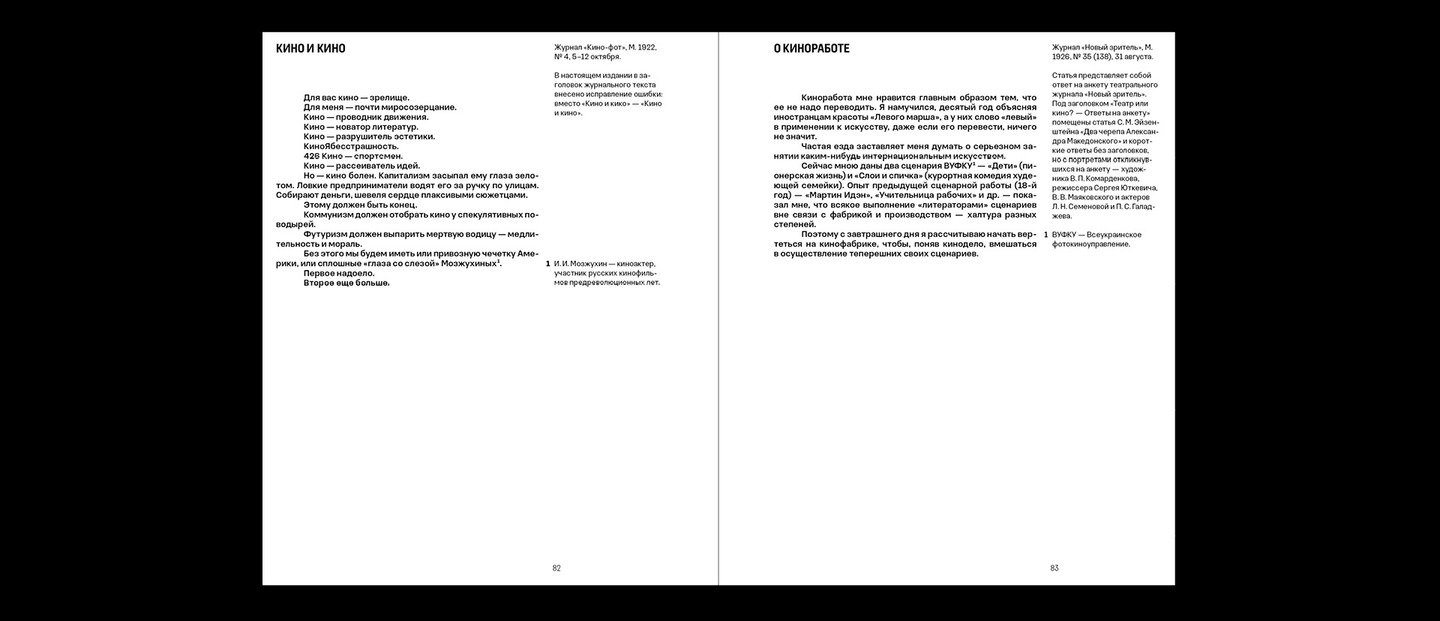 В конце книги располагается блок критических статей Маяковского о кино, в начале каждой дается сопроводительная информация