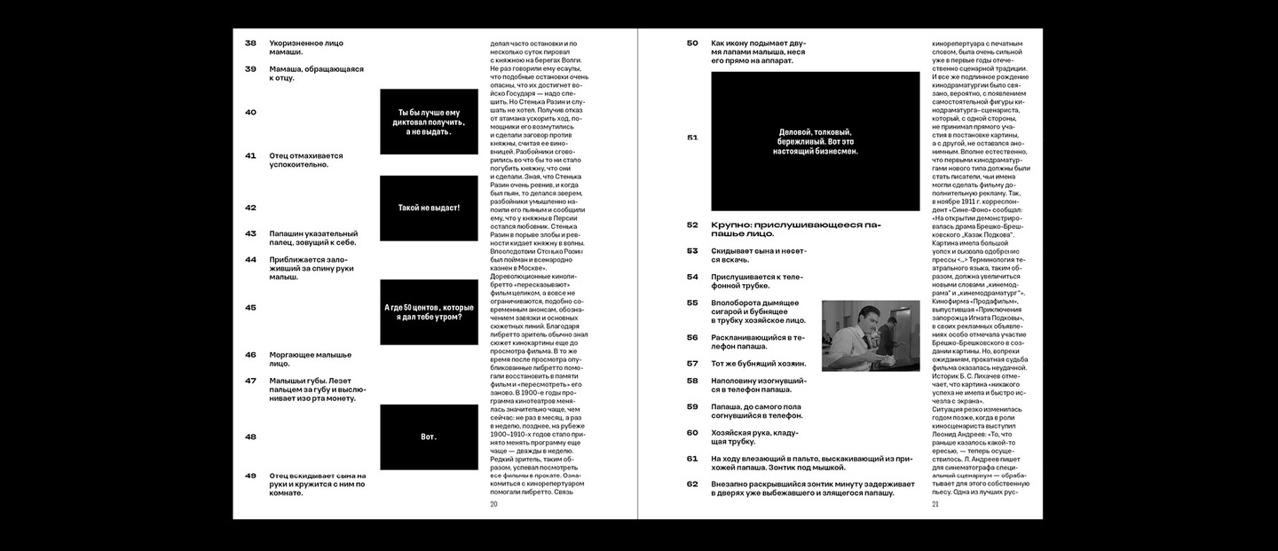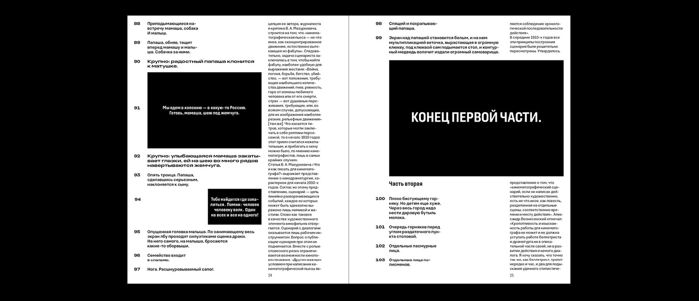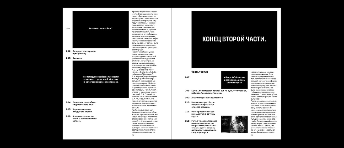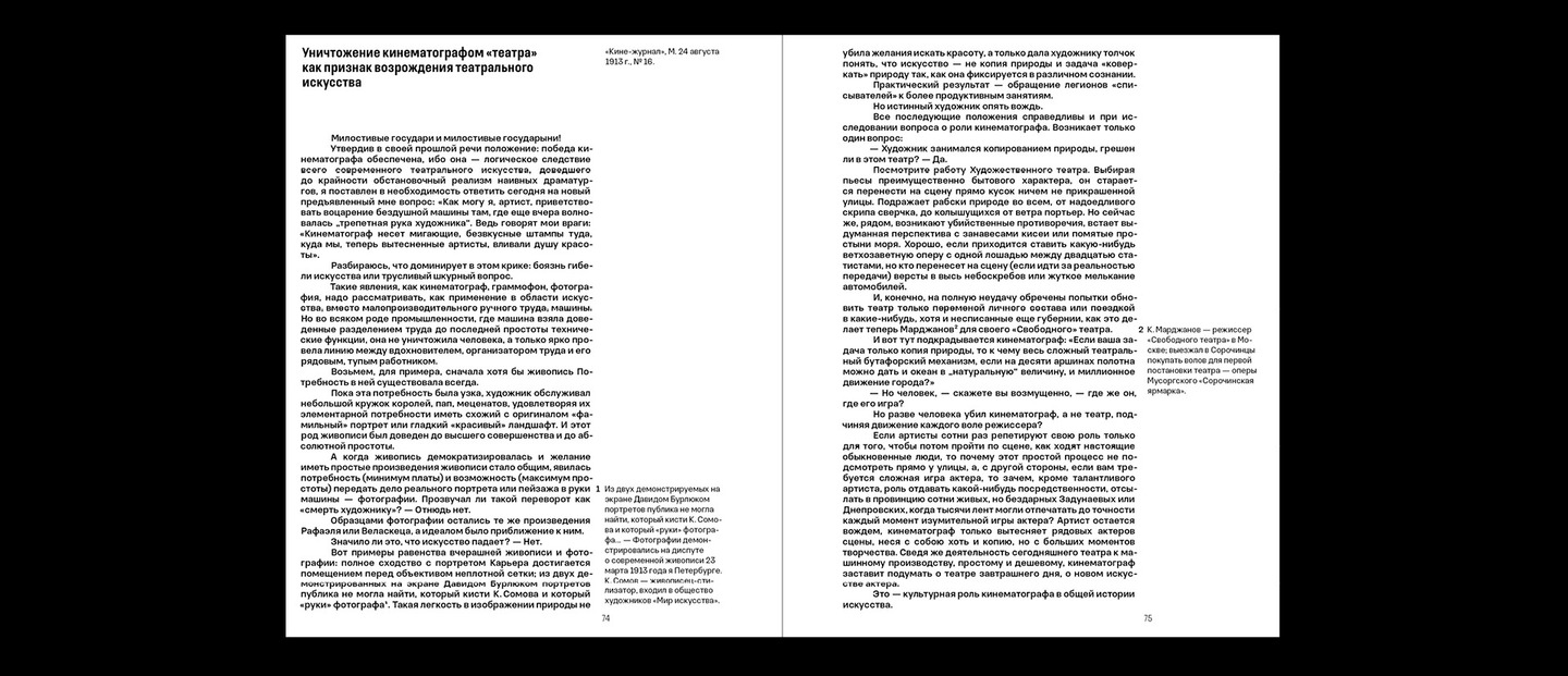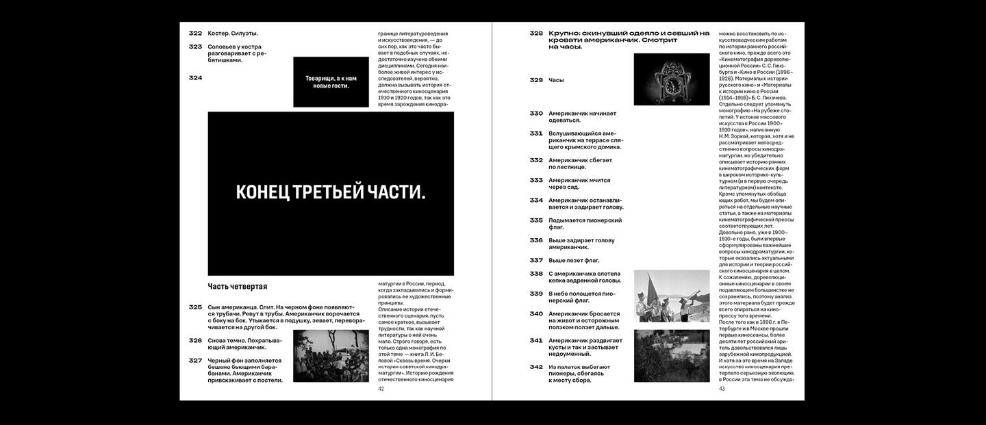 В конце книги располагается блок критических статей Маяковского о кино, в начале каждой дается сопроводительная информация