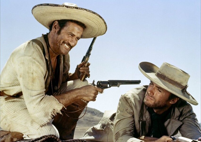 Хороший, плохой, злой (1966). Режиссер: Серджио Леоне Отличительные черты: Бесконечные пейзажи, уникальные ракурсы и камерные движения, характерные для Леоне, музыкальная тема «Il Buono, Il Cattivo, Il Brutto» Эннио Морриконе.