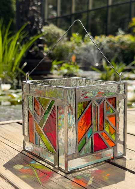 Во втором модуле Творческой мастерской мозаики и витража я создала две витражных работы в технике Тиффани: фонарик «Фрагменты азбуки» и гирлянду «Лето в саду» из цветного стекла
