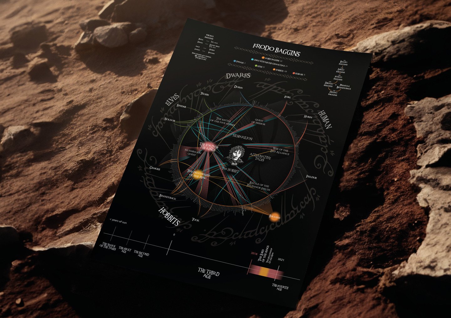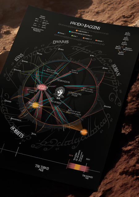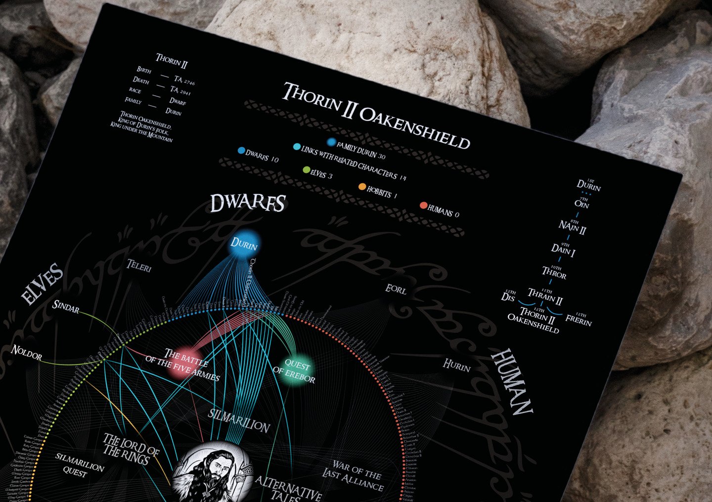 Мир Средиземья описанный в серии книг Дж. Р. Р. Толкина может похвастаться огромным количеством персонажей с запутанными семейными связями. Серия плакатов отобразит взаимосвязи и ключевые события в жизни персонажей, делая мир профессора более наглядным.
