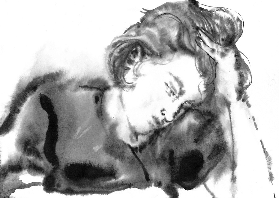 Я выбрала технику быстрого рисования по мокрой поверхности: я надеялась превратить страх в интерес. Неважно, насколько удачным получится в итоге рисунок — намного важнее наблюдение за растекающейся в причудливых формах тушью.