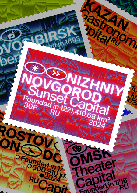 Марки на тему «Коллекция» для open call’a Школы Дизайна. Они рассказывают о 9 неофициальных маленьких столицах России.