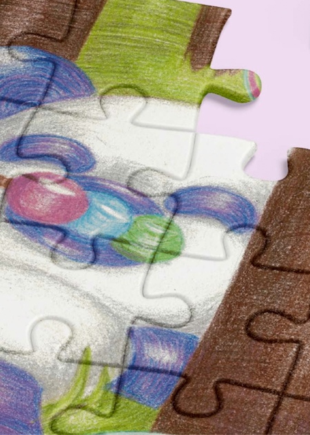 Линейка мерча к детскому комиксу «Фиолетовый комикс», куда входят: - Брелоки - Стикеры - Открытки - Постеры - Цветные фиолетовые карандаши - Пазл - Шоколад - Полотенце