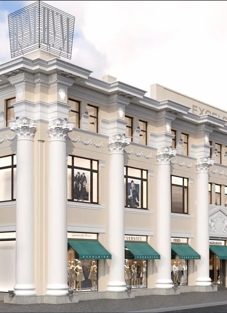 Проект фасада здания ЦУМ в г. Краснодаре связан с одним из наших дизайн-проектов бутика высокой моды для Excelsior Fashion Group.