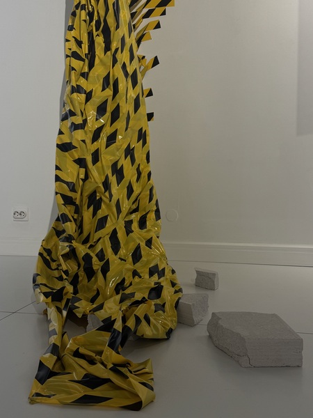 В своём перформансе я разрываю барьер ожидания: зритель становится свидетелем момента, когда иллюзорная защита рвётся, освобождая и объединяя ранее разделённые части пространства — за полотном и перед ним. Образовавшийся разрыв создаёт проход, условно делящий помещение на зону комфорта и страха и зону свободы и движения. Причём чётких границ между ними и распределения, где какая зона, нет — они остаются взаимозаменяемыми, в зависимости от выбора самого человека.
