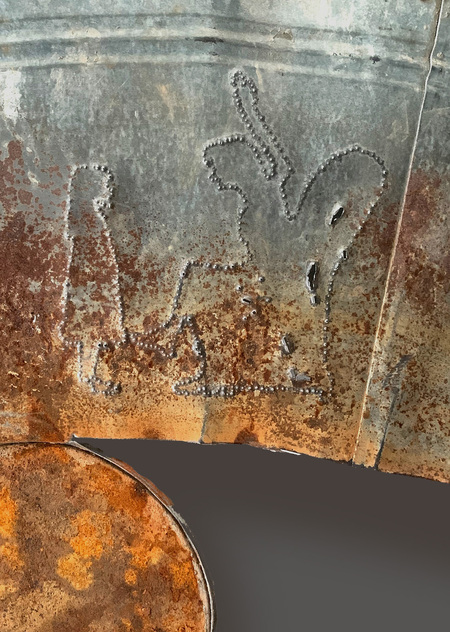 Daria Turina. A tormenting angel. From the series «All Families…». 2019. Chicken bucket, cut rusty, checanka