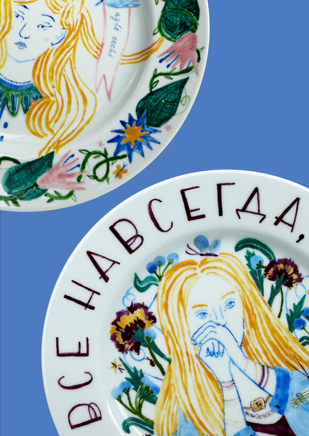 Вдохновением послужил абстрактный коллаж — техника, которая позволяет найти баланс формы и цвета. Я создала абстрактный рисунок на одной стороне чашки, а на второй «расшифровала» его в реалистичном изображении. На блюдце я объединила оба стиля.