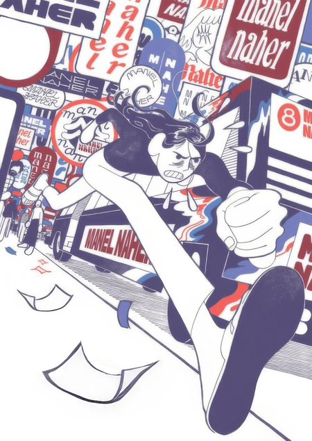 Леа Мюравьек очень размашистыми, динамичными мазками иллюстрирует эти сцены, в них Манел Наэр предстает во всех красках своего эгоизма и безразличия не только к «толпе» (или её отдельным представителям), но и к близким людям, друзьям.