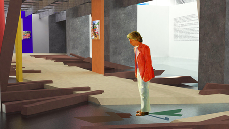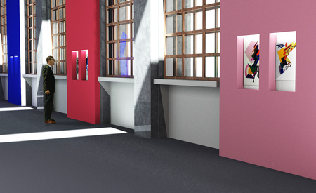 Посетитель постепенно двигаясь по выставочному пространству, начиная от блеклого зала и в конце приходя в цветное пространство, наблюдает за усилением влияния цвета в работах Розановой.