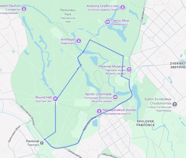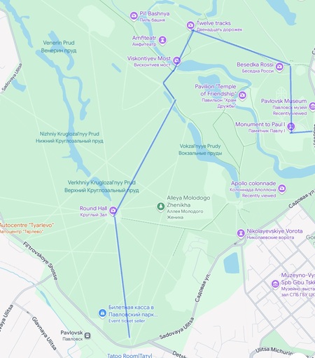 Павловский вокзал — Круглый Зал — Двенадцать дорожек — Павловский дворец