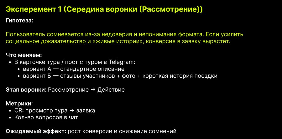 Источник: дополнительное качественное исследование, декабрь 2025, n = 6. Аудитория: люди с опытом авторских туров / интересом к ним.