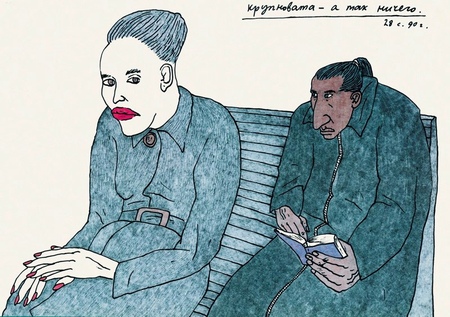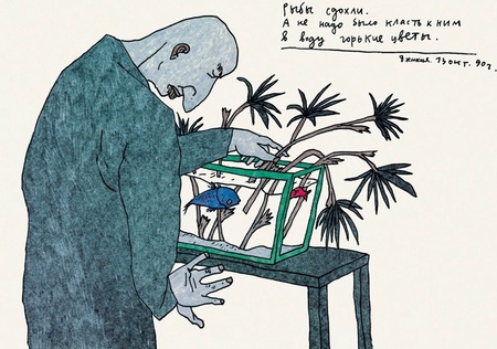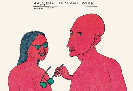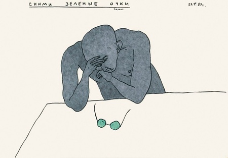 Итак, в какой-то момент (летом 1982 года) я начал рисовать картинки с подписями, изображающими некие ситуации, истории, желательно никогда прежде никем не рассказанные. В этих историях чаще всего исчезал фон, и нарисованные персонажи оказывались в пустоте, заполненной текстовым сообщением.