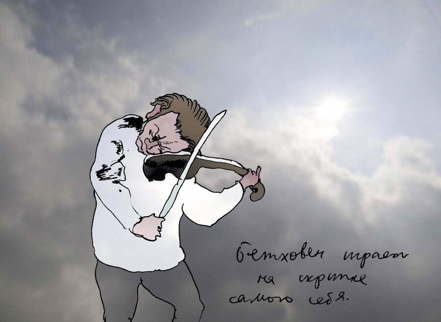 В своё время я задумался над тем, что в классическом изобразительном искусстве существует достаточно ограниченный набор тем. Чаще, художники использовали одни и те же сюжеты, упражняясь в вариантах их прочтения и делая основной упор на мастерстве исполнения. Мне стало интересно рисовать то, о чём никто раньше не рисовал, тема стала для меня главной, а также в какой-то момент я прибавил к картинке «название» в кавычках, так как написанный текст часто становился ключевым элементом для понимания рисунка. Не могу сказать, что в этом есть что-то из ряда вон выходящее — картинки с подписями существуют с древнейших времён, но в современной мне графике это не было распространённым явлением.