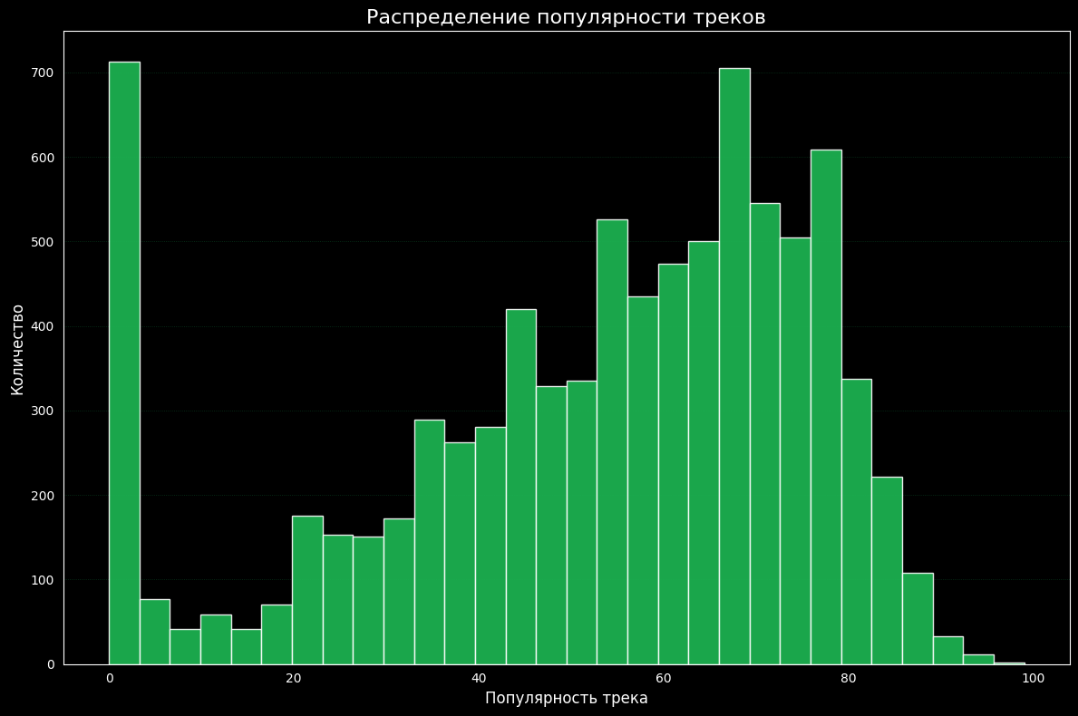 Для проекта по анализу данных я выбрала датасет с информацией о треках и артистах Spotify (так как является основным приложением где слушаю музыку), размещённый в открытом доступе (на сайте Kaggle). Данные содержат метаинформацию о композициях: название трека, исполнитель, альбом, дата релиза, популярность трека и артиста, количество подписчиков, а также технические характеристики звучания. Сразу отмечу, что все оценки треков по популярности идут на основе внутренней оценки приложения. Но даже так они представляю собой интересную информацию для анализа.