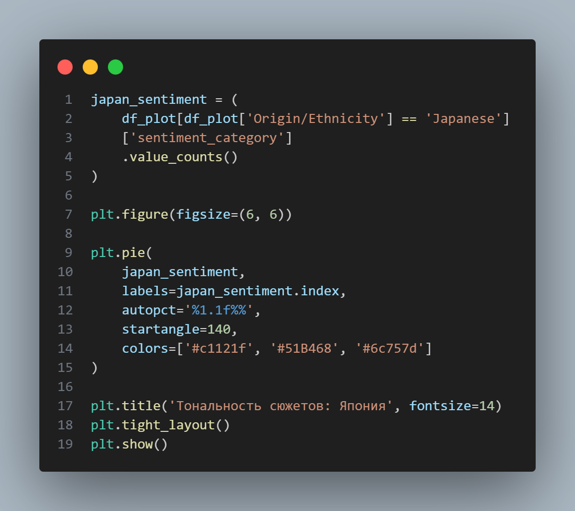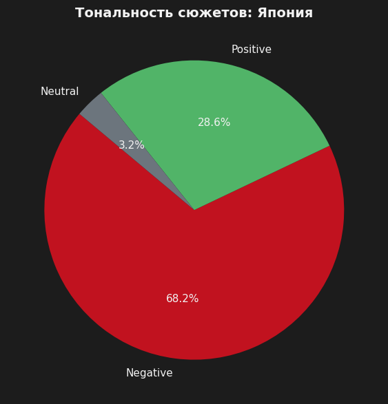 В японской киноиндустрии наблюдается более высокая доля негативных сюжетов. Это может быть связано с тематикой фильмов, где часто поднимаются экзистенциальные, социальные и трагические мотивы, что отражается в описаниях сюжетов.
