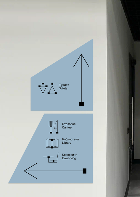 Вдохновением для системы навигации послужили конструкции, расположенные под потолком здания Канатного цеха