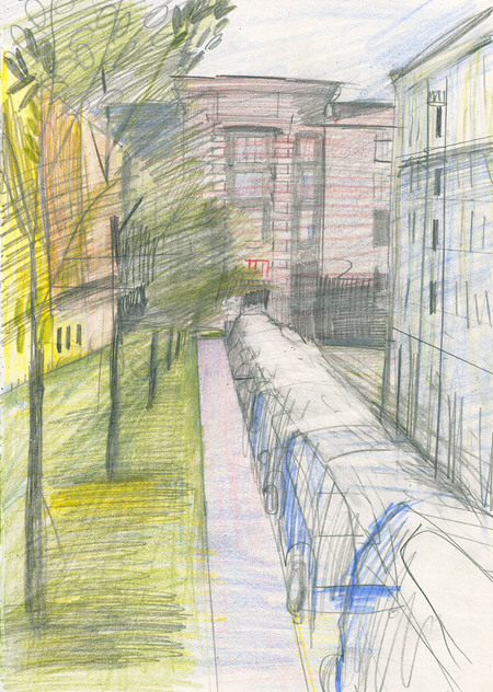 Улица Лизы Чайкиной. Бумага, цветные карандаши.