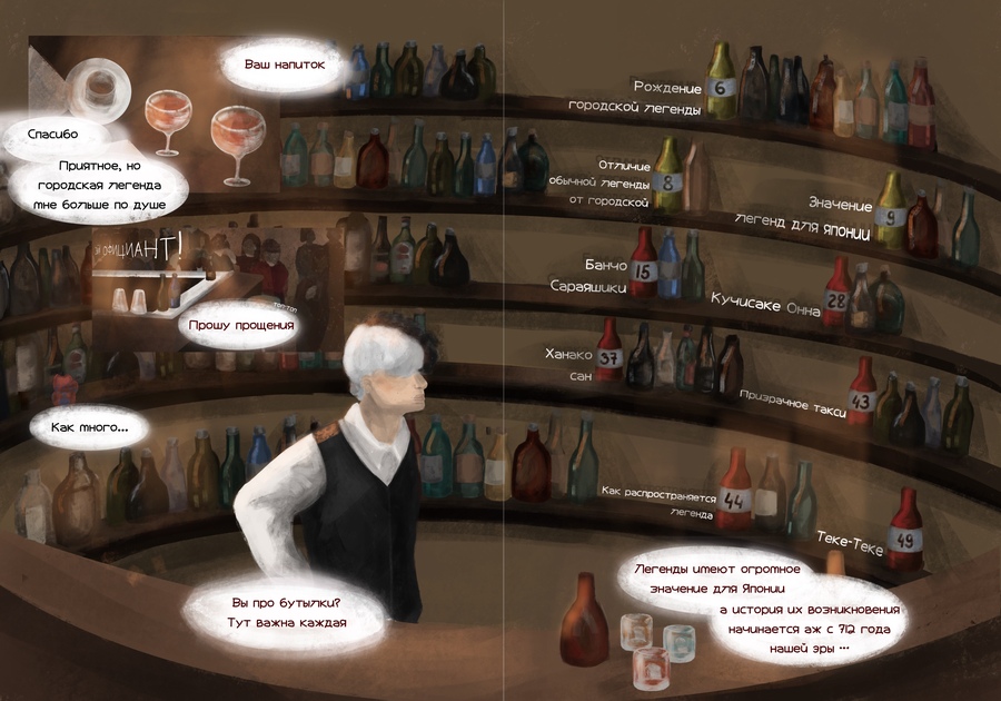 Нон-фикшн комикс о городских легендах Японии. Главный герой — бармен, который сопровождает читателя, — непосредственного участника действия, — в мир легенд.